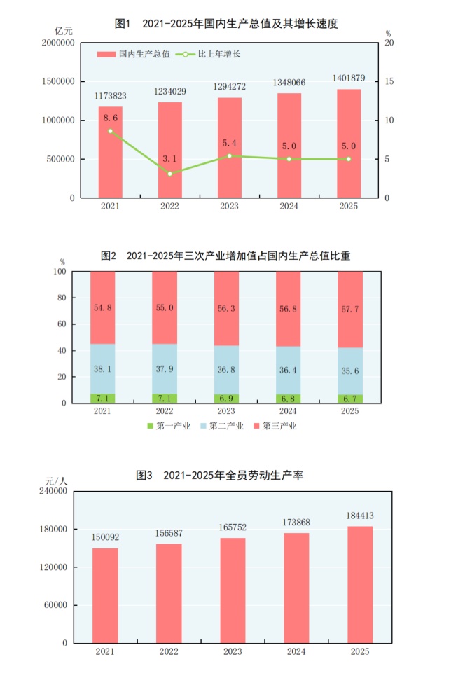 初步核算,2025年,我国国内生产总值(GDP)1401879亿元,比上年增长5.0%。经济总量首次突破140万亿元大关,圆满完成预期目标任务。